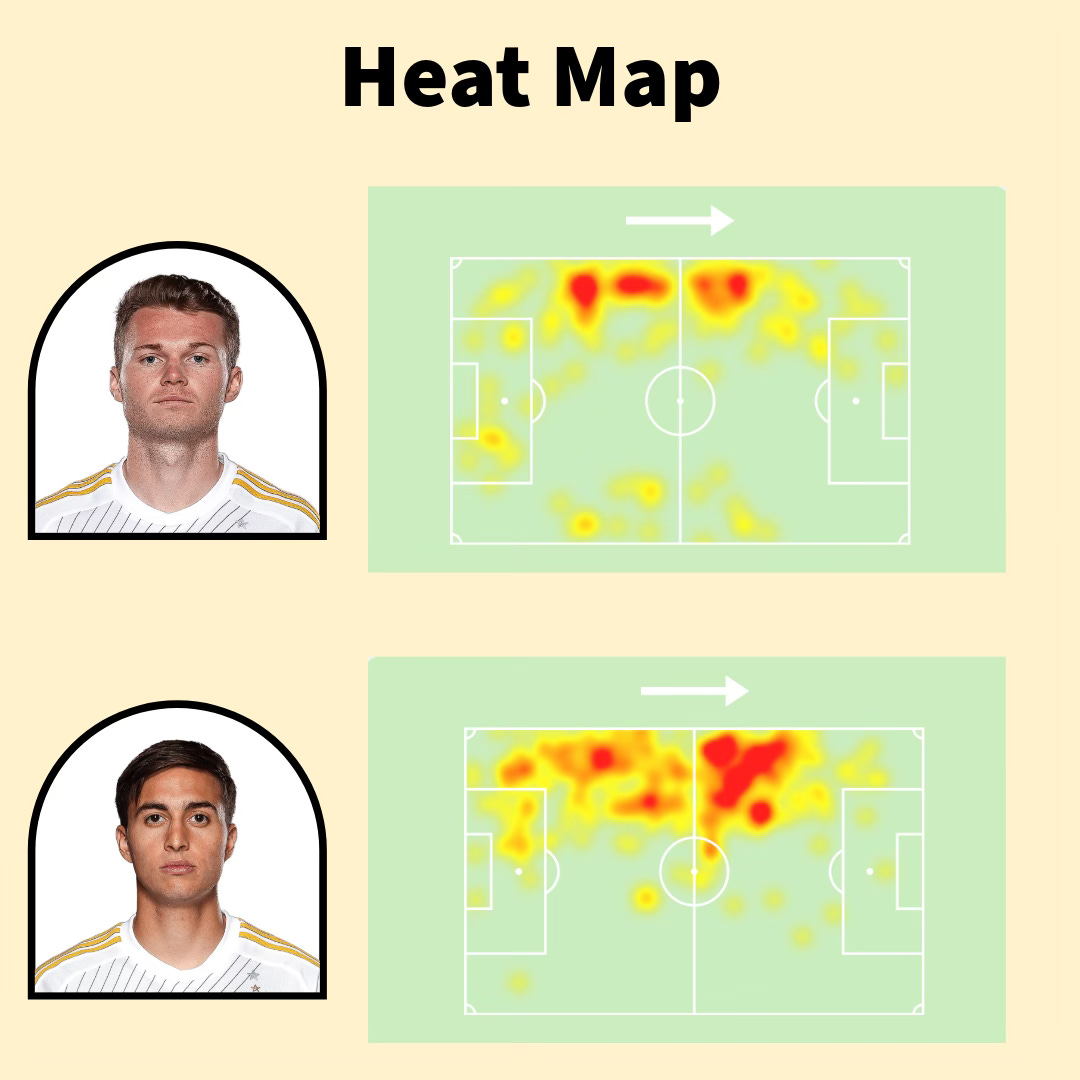 The Argentine hasn’t been afraid to show his skills on the ball, as he welcomes the opportunity to beat his opponent on the dribble. His overlapping runs and positioning are more ambitious than those of Nelson. The one major difference between the two is the volume of touches that both handle. Take a look at the heat map below for the season so far, according to SofaScore.com.